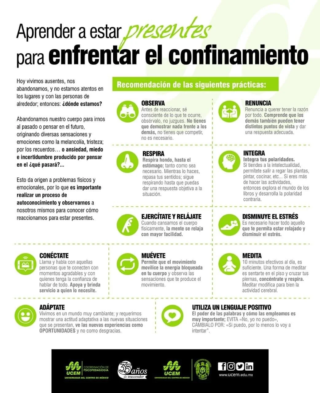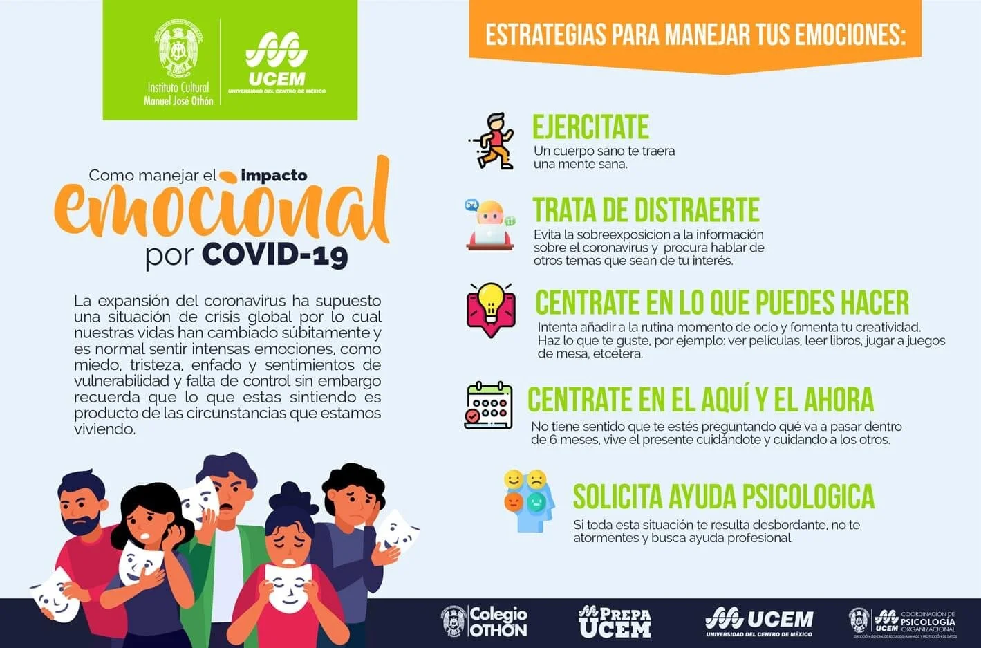 En el Instituto Cultural Manuel José Othón y la Universidad del Centro de México, nos mantenemos conscientes de los retos derivados de la pandemia por COVID19 y hemos actuado en todo momento con un propósito prioritario: cuidar la salud de toda nuestra comunidad.